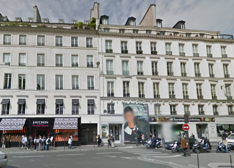 I forgot to take my own shot of the gallery, so here’s the Google street view of the Pinacotheque. Love the blurred out face on the poster.